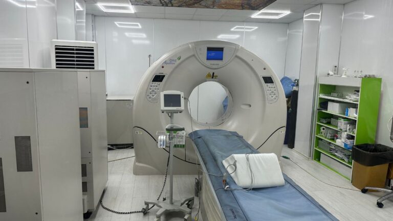 لە نۆرین ئامێری سی تی سکانی Aquilion One 640-Slice CT Scan بەکار دەهێنین کە یەکێکە لە پێشکەوتووترین سکانەرەکانی جیهان. بە پێچەوانەی ئامێرە ئاساییەکانی سی تی (وەک ٦٤ سلایس یان ١٢٨ سلایس) کە چەند چرکەیەک و چەندین خولانەوەی دەوێت بۆ گرتنی وێنە، ئەم سیستەمە دەتوانێت تەواوی ئەندامێک سکان بکات — چونکە ٦٤٠ سلایسە. ئەمەش واتە وێنەی ڕوونتر و کەمتر تیشک و ئەنجام خێراتر و کورتتربوونی کاتی ڕاگرتنی هەناسەدان، کە وا دەکات سەلامەتتر و ئاسوودەتر بێت بۆ نەخۆشەکان. وێنەی زۆر ڕوون دەخاتەوە بە 0.25–0.5 mm سلايس، وردبینییەکی ناوازە دەدات بۆ دەستنیشانکردنی دڵ، مێشک و ئەندامەکانی تر. بۆ وێنەگرتنی دەمارەکانی دڵ (Coronary CT Angiography)، نزیکەی تەنها 50 cc كونتراست بەکاردێت، کە نزیکەی نیوەی پێویستی سی تی سکانی ئاسایە. سکانەرەکە تا 80% تیشکدانەوە کەمتر لە سی تی ئاسایی بەکار دەهێنێت بەبێ ئەوەی کوالێتی وێنەکان کەمبکات، کە ئەمەش بۆ تەندروستی نەخۆشەکان باشترە.